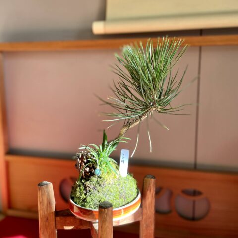 極めて狭くて小さな苔玉大地に、寒中にもかかわらず元気な生命力を見せてくれる植物たちです。油断すると枯らしてしまいます。新春を寿ぐ苔玉植物の代表に『マツ』を使うことが多いですが、『松の苔玉』を枯らしてしまったと耳にすること、しばしばです。原因は単なる水切れでした・・・!